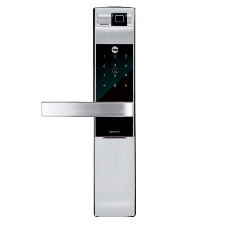 YDM7116A-S 5-in-One Digital Fingerprint Lock สามารถเข้าออกได้ 5 แบบ คือ สแกนลายนิ้วมือ รหัส การ์ด กุญแจสำรอง และบลูทูธ (ผ่าน Yale Home แอปพลิเคชัน)