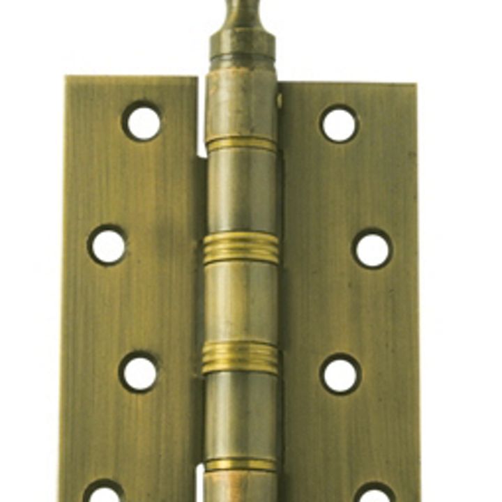 บานพับประตูเหล็ก สีทองเหลืองรมดำ หัวจุก มีหมุดยึด 4 แหวนทองเหลือง1 of 3
